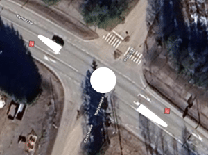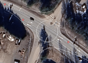 Tuossa olen ottanut kuvankaappaukset samaan mittakaavaan ja Cad-ohjelman avulla piirtänyt Iitintien risteyksen ääriviivat (mittayksiköt eivät ole mittakaavassa).